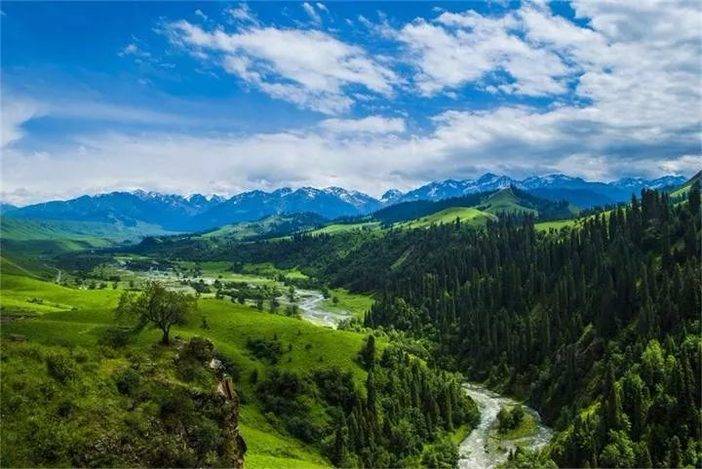 景区内雪山、森林、草原、河流、瀑布相间,拥有1000余种高等植物、146种陆栖脊物和196种昆虫,其中国家重点保护动物高达30余种,堪称是欧亚大陆腹地野生生物物种的“天然基因库”,其中拥有国内最大的天山特有物种——雪岭云杉,是全球雪岭云杉和中亚野果林的最佳生境区和起源地,被誉为“天山最美的绿谷·雪岭云杉的故乡”。