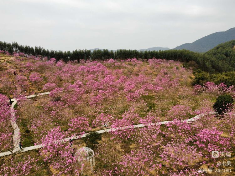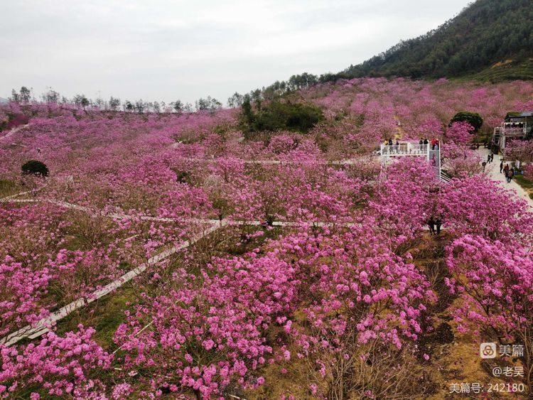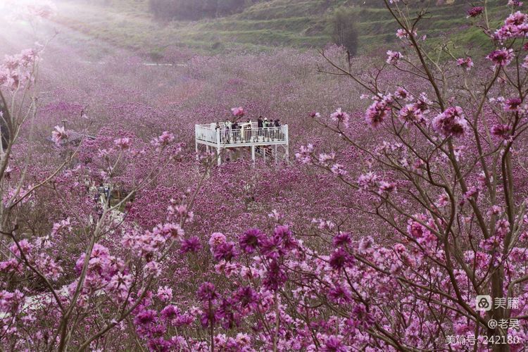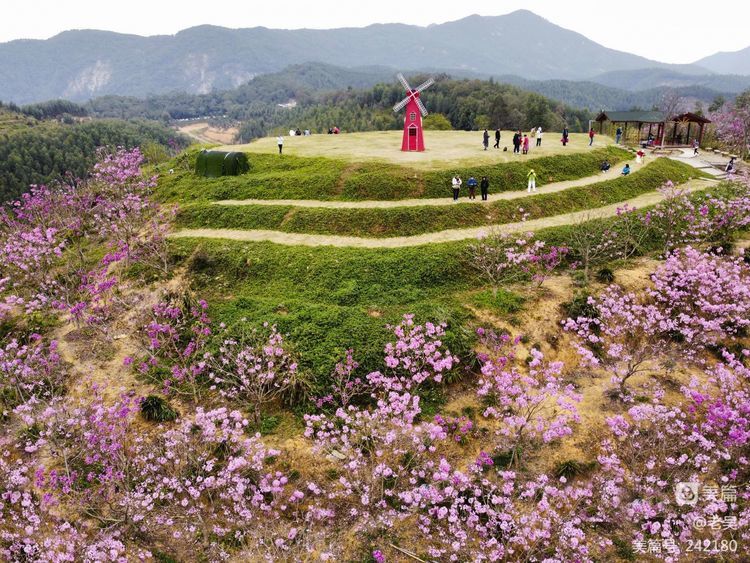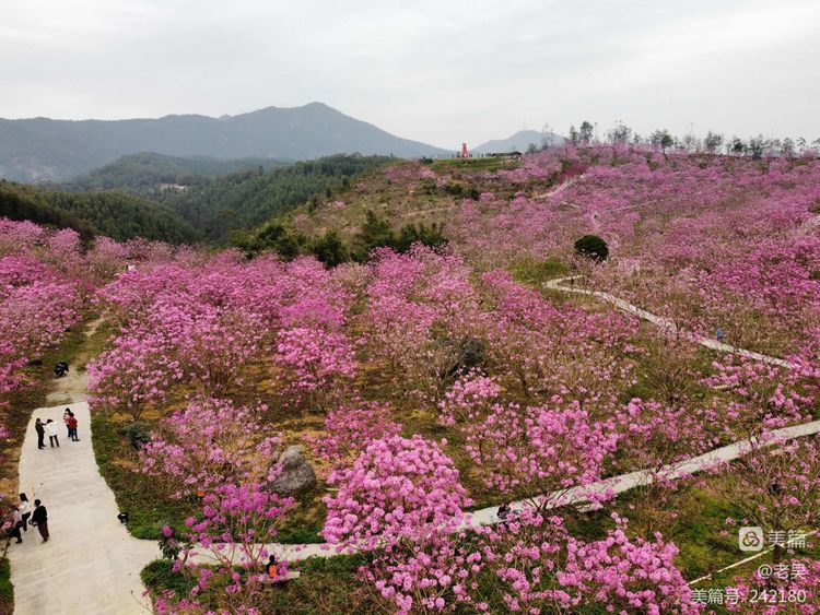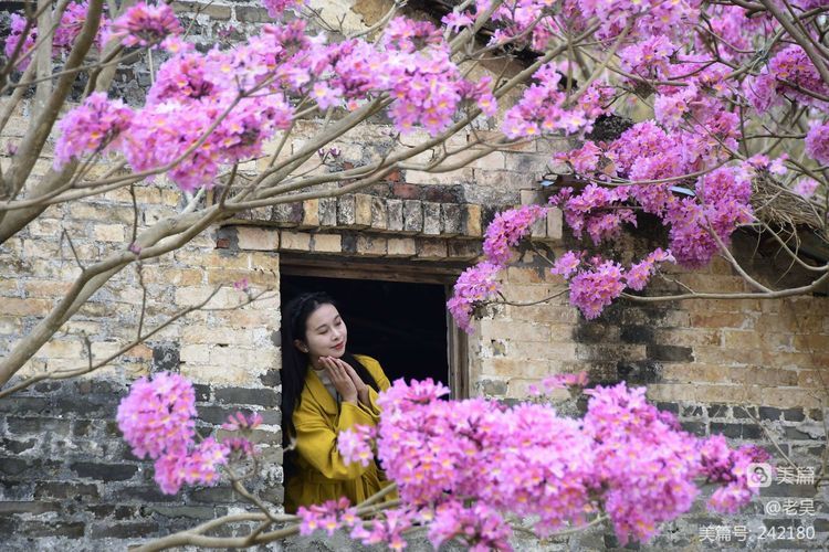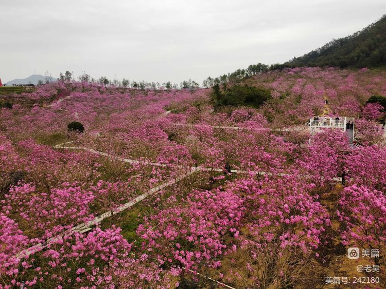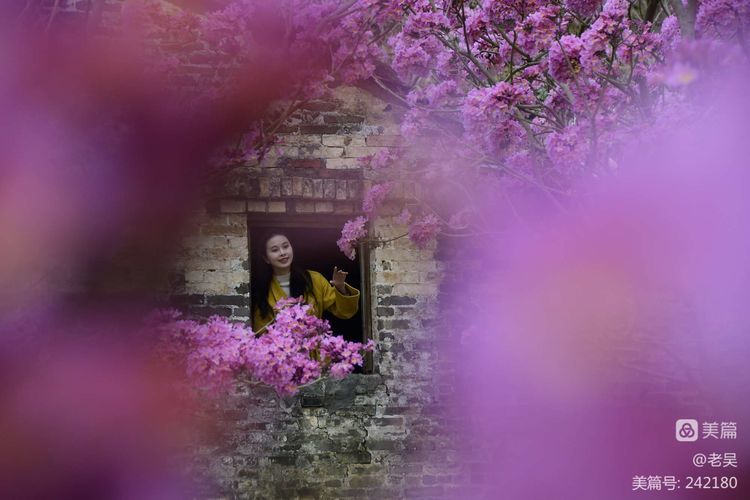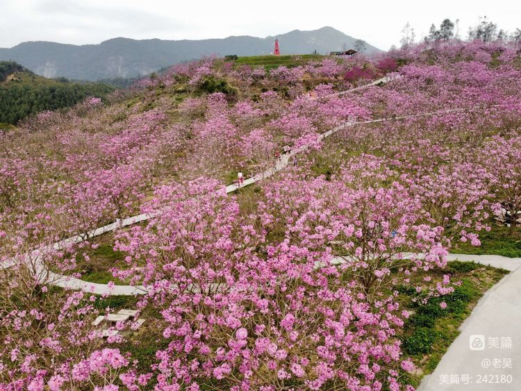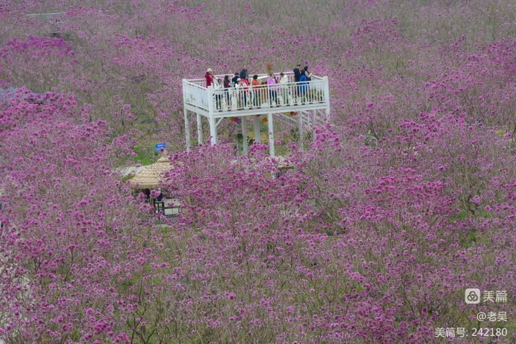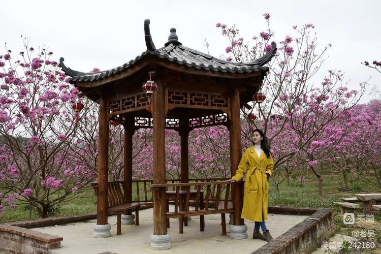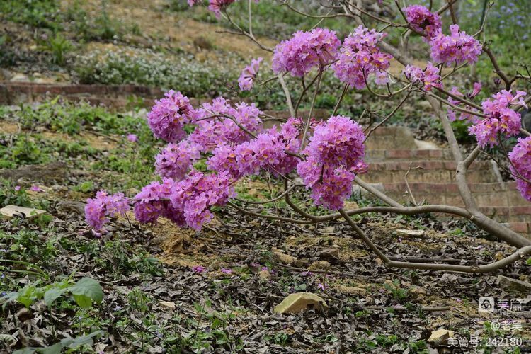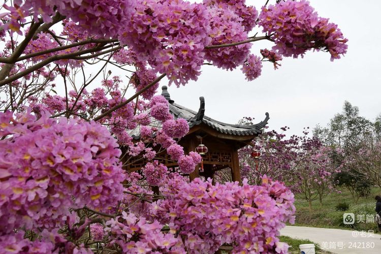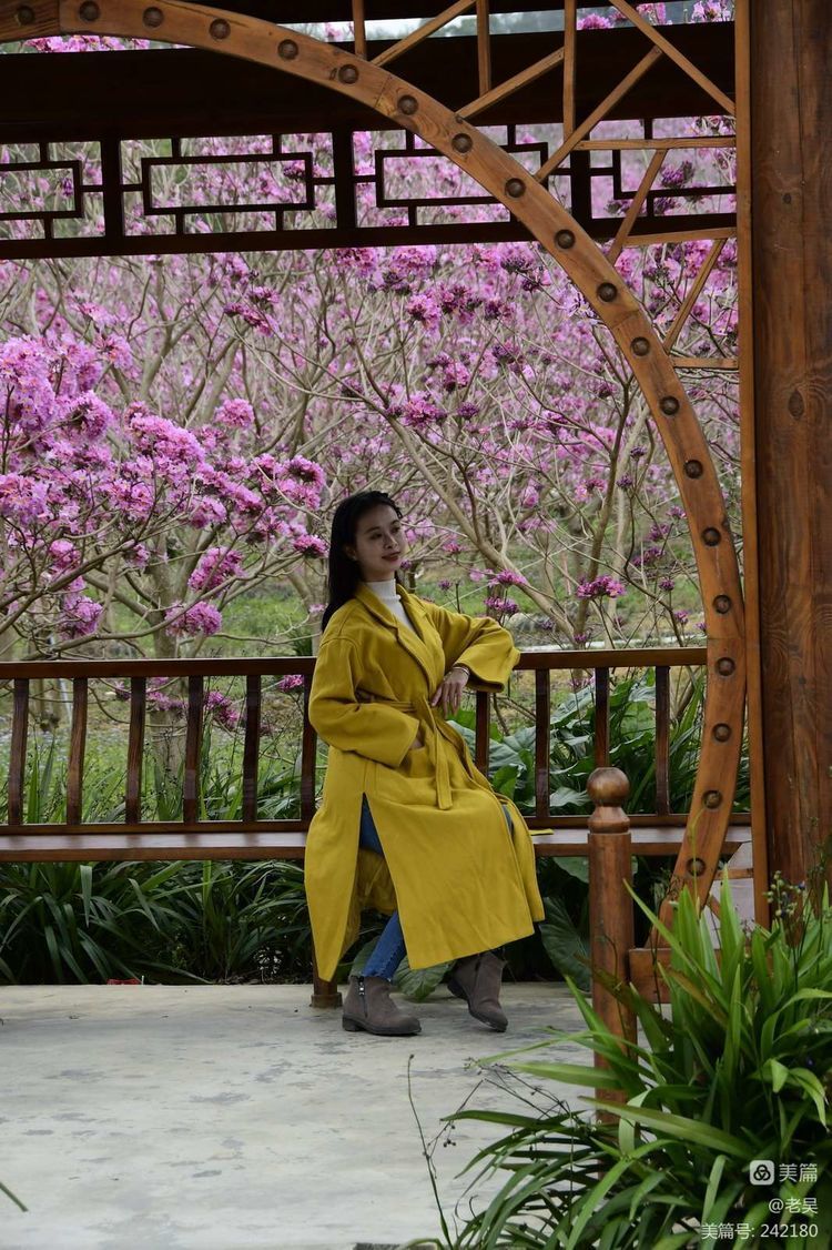 江门市新会区大泽镇的绿美生态农场,是紫花风铃木树苗的种植基地,近几年成了网红打卡点,一月下旬到二月初,农场山谷里一片片紫花风铃花盛开,一簇簇粉紫色的风铃花缀满枝头,空气中弥漫着淡淡的素雅清香,近看是一个个圆圆的花球,远看是一片片粉紫色的花海,蔚为壮观也。