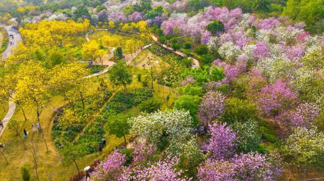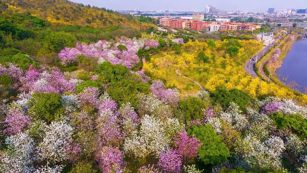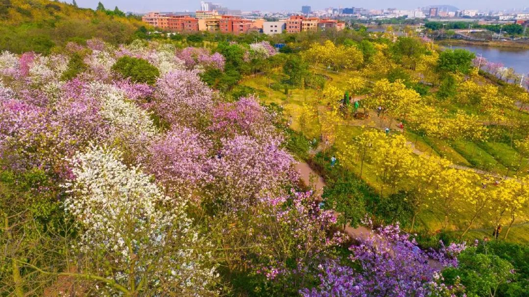 还有湖边延绵4KM的黄花风铃和宫粉紫荆花