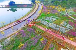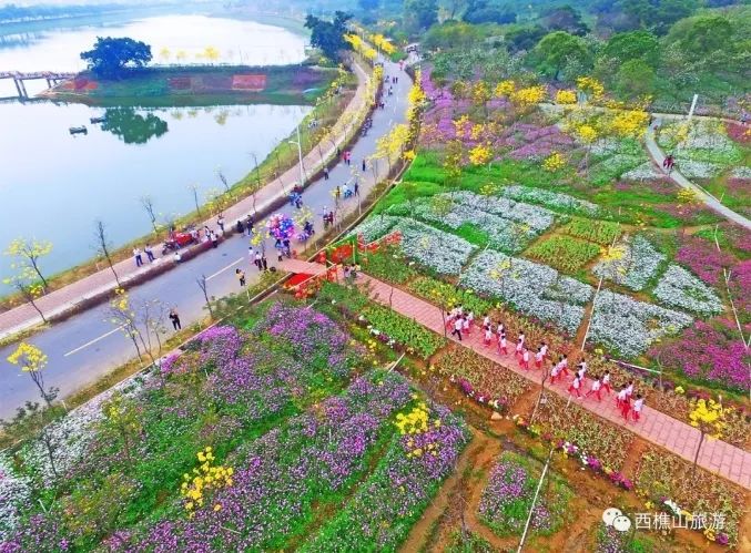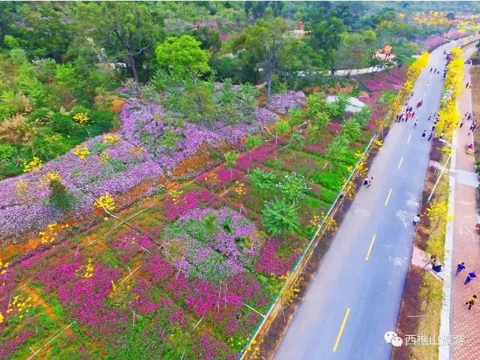 西樵山4公里长的环山花海宛如一条七彩龙用五彩缤纷的花儿点缀樵山层层叠的绿