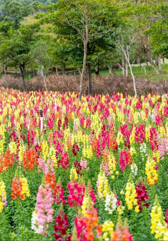 暖暖春日,漫山遍野的金鱼草娇艳烂漫,如神工巧匠画下的一道彩虹,点缀着美丽的西樵山。