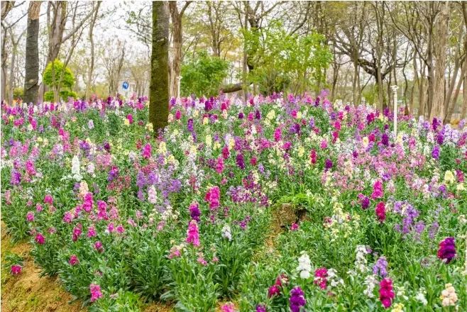 成片的紫罗兰在花海绽放,光是看着就很迷人。置身花海中,一阵清风拂过,阵阵清香袭来,也算是早早感受了一把春天。