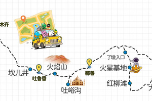 4、门票和区间车:全程门票(含区间车):盐湖景区、坎儿井、火焰山、大海道、吐峪沟;