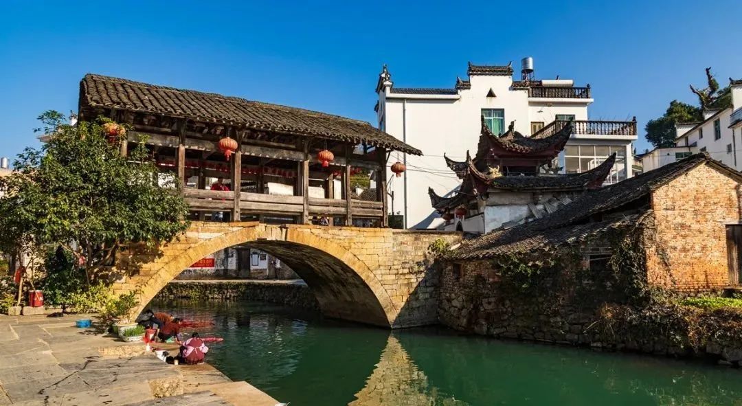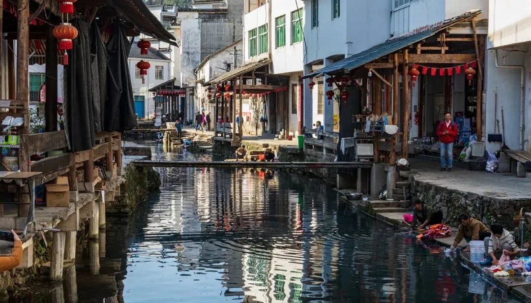 婺源游山村是江西历史文化名村,婺源最大的自然村,始建于宋朝太平兴国年间,有800多户,3800多人口,被称为"千烟"之村。现存明清民宅500多幢。一条太极形的人工河——浚溪穿村而过,民宅夹浚溪而建,村落布局如太极。600多米长的溪岸俨然是一条繁华的河街,店铺鳞次栉比,村民们的日常都在河里生活浣洗,是抓拍人文民俗大片的极佳去处