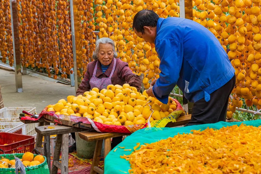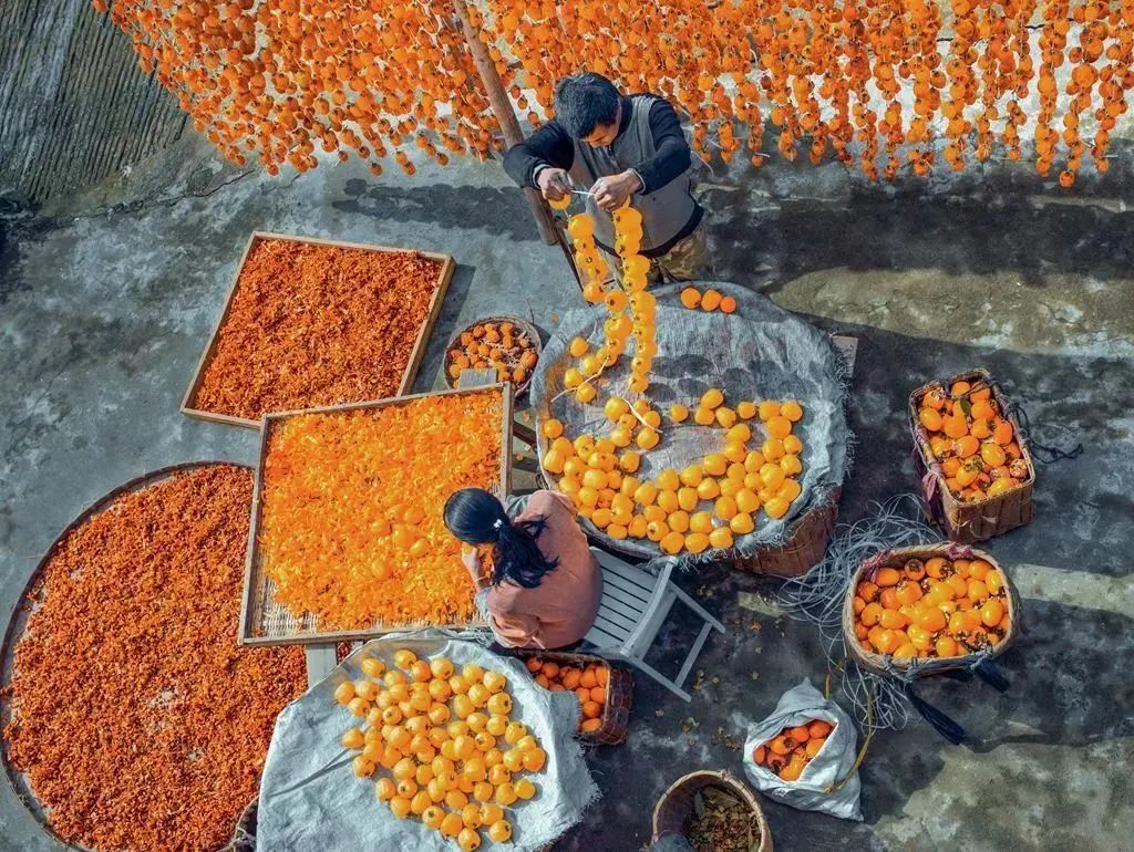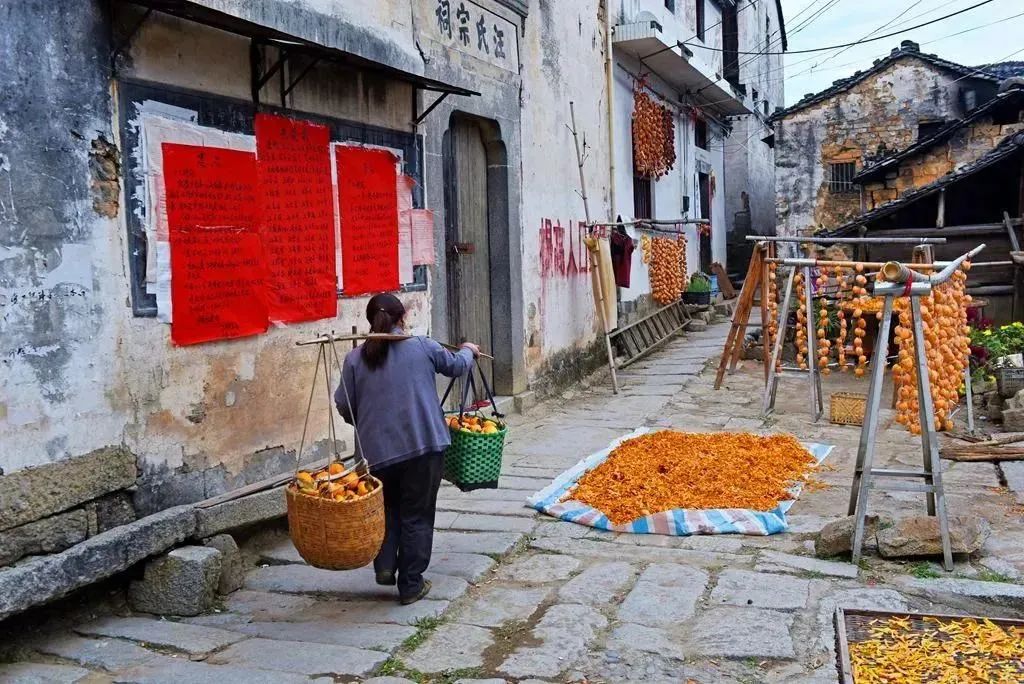 2、 下午:前往拍摄著名的歙县柿子村【姬公尖】(换乘当地下车上下),这是一座最高海拔有700多米山巅上的自然古村落,以盛产形状独特的"灯笼柿"和绿梅为闻名的,还有“徽州贡菊、梅花”等特产,一年四季花果飘香,霜降过后,晒柿子就成为这个村的一大特色。深秋时节,家家户户都要晒柿子,走在村内,可以看到一些人家门口和院内挂着一笼笼悬挂在竹竿上的柿子和盛放柿子皮的竹篾上的柿子皮,已就成为秋日里最美的风景。可拍摄挂满枝头红彤彤的柿子及灯笼柿的采摘、晒制等人文民俗,还有远处山峰连绵,山上斑斓秋色点缀,恰似一幅青绿山水画。机会好还可以拍摄到各种非遗民俗活动,完毕前往石潭山下民宿晚餐入住休息,晚上自由拍摄石潭村夜色;