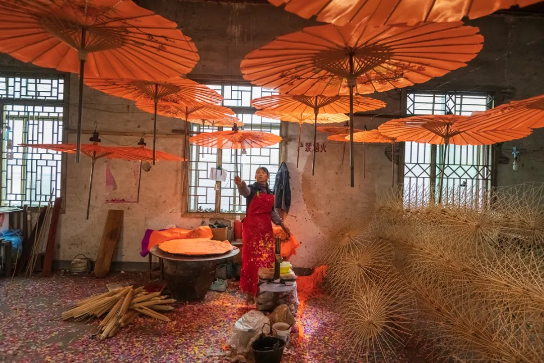 2、下午:前往著名的【清华油伞厂】,拍摄非物质文化遗产、流传了百年传统的手工纸伞制作工艺流程(安排模特导拍),这里至今仍保留着传统手工制伞工艺,纸(绸)为面,竹为骨,绘以栩栩如生的花鸟、姿态优雅的仕女……,透过镜头一把把打开的油布伞,演绎着匠人们传承非遗文化的华彩乐章。完毕前往浙源沿途拍摄古树古桥古塔古村落人文田园风光。完毕返回酒店晚餐入住休息。