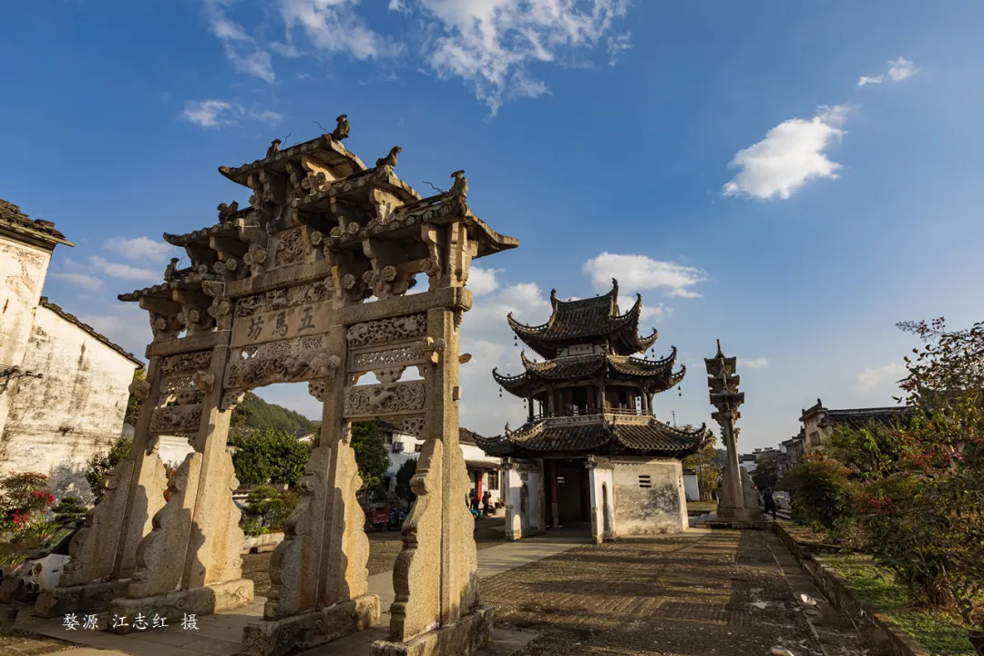 在婺源北部的浙源乡,时光仿佛被山水与人文凝固——苍劲的古树盘踞溪畔,斑驳的古桥横卧清流,巍峨的古塔守望村落,构成一幅未被现代喧嚣侵扰的徽州原乡画卷。这里是摄影人追寻人文与自然共生之美的秘境。