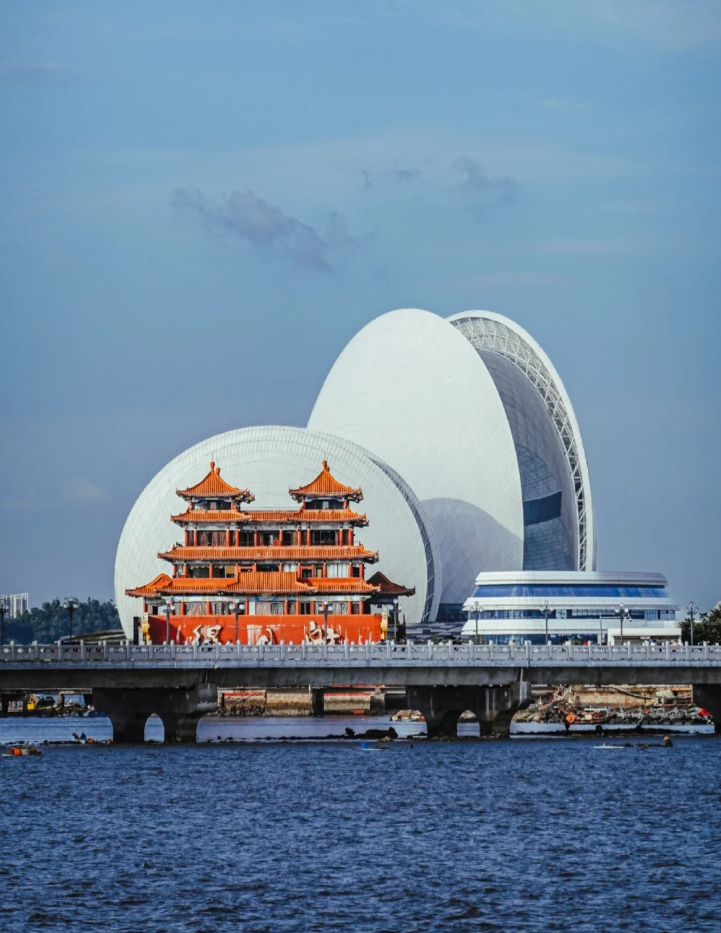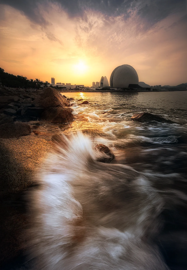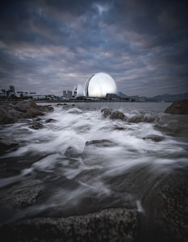 2、出发珠海拍摄横琴十字门会展中心,金融中心片区,静待晚上拍摄烟花,此处较为凉爽,有树林可以避开阳光直晒,建议携带小板凳或折叠椅备用,足够个人饮用水(附近有厕所)