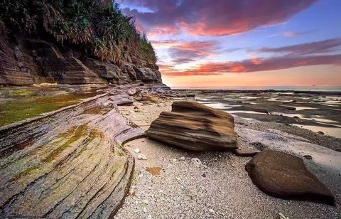 06:00 拍摄完五彩滩日出重头戏后,趁着阳光正好,自由拍摄耸立海蚀崖崖面,以及阳光照射下呈现五彩的海蚀平台,在青苔,以及海洋衬托下的独特美景;