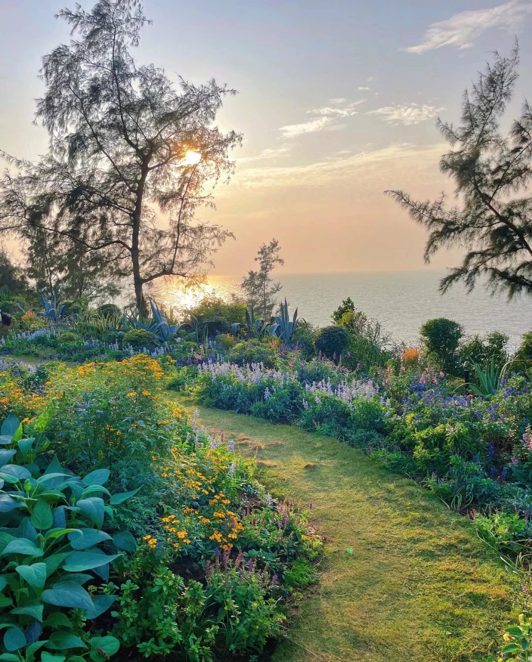 层层叠叠的错落感花园、翠绿的落日草场、远眺无边海景、精心搭配的色彩视觉效果,随手一拍都是妥妥的海岛大片!