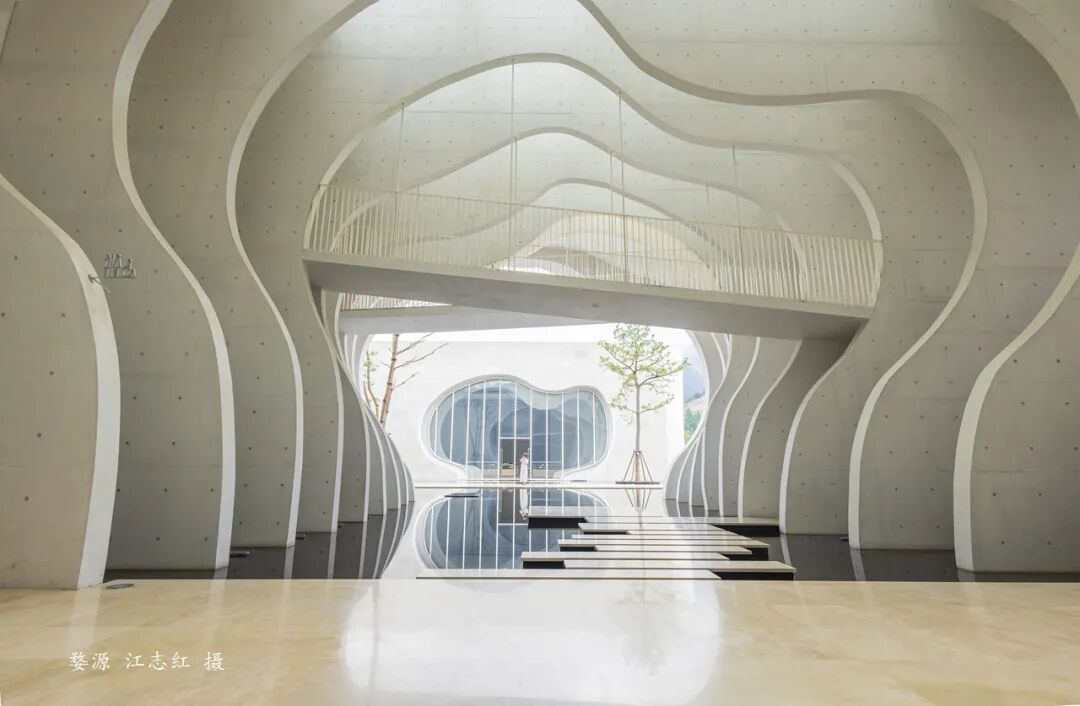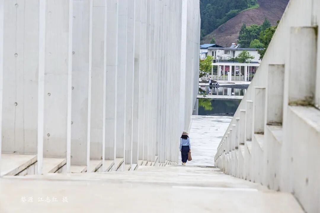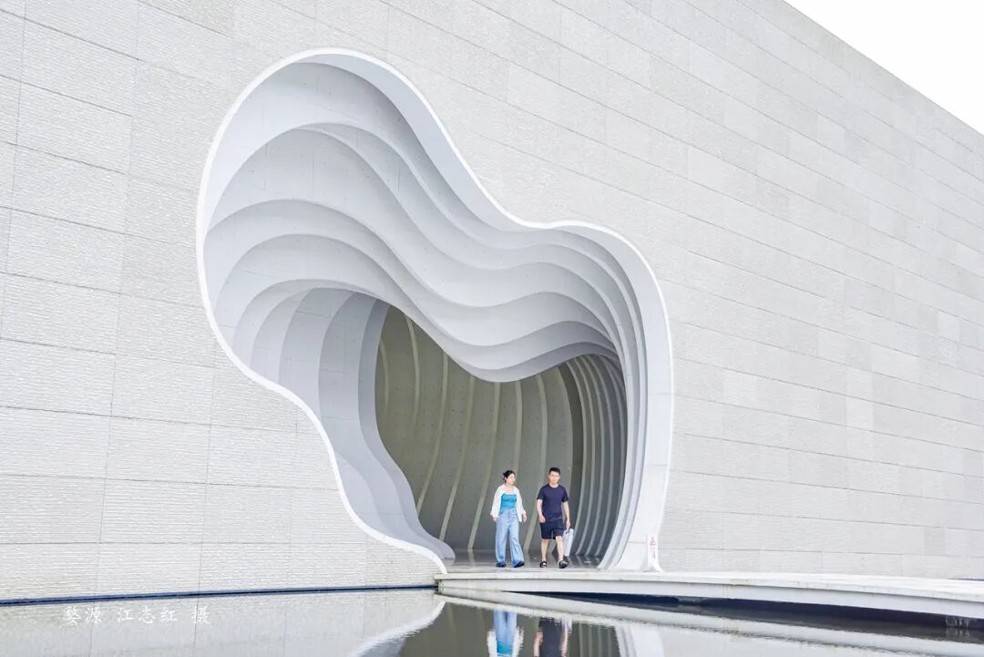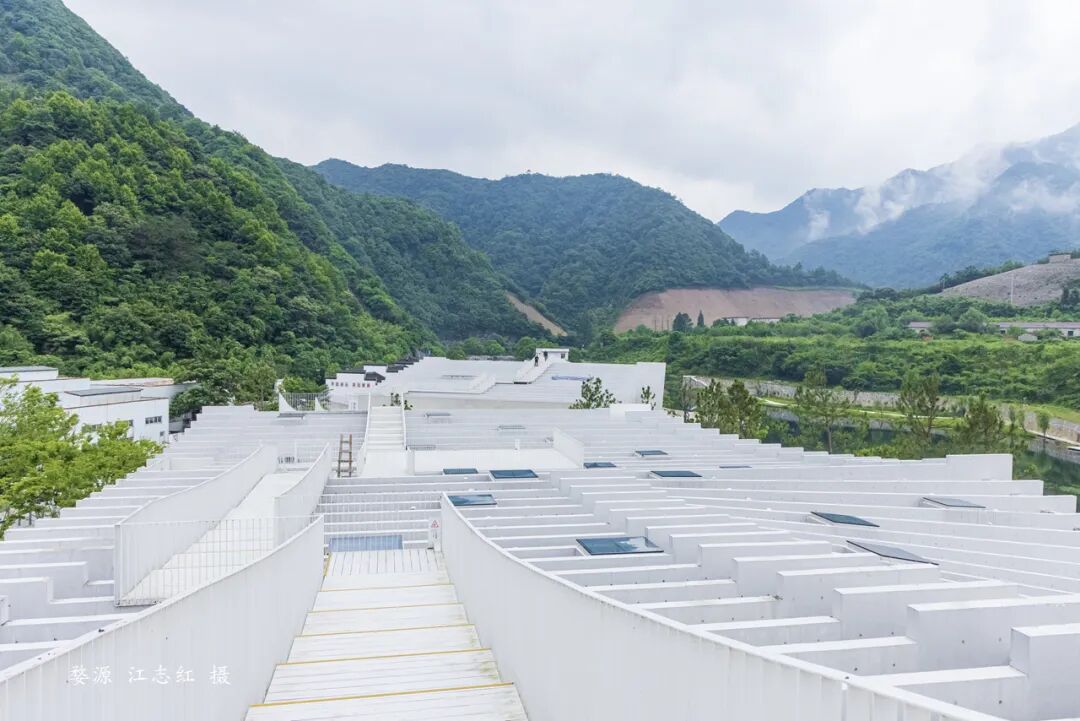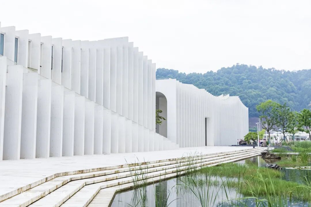 中国宣纸文化园位于安徽省南部宣城泾县。宣纸是中国传统文化中的“顶流”之一,在2006年的时候, “宣纸制作技艺”被国务院批准为国家非物质文化遗产保护名录。身处这座洁白建筑前,仿佛融入艺术家手工折纸之境,双眸所见唯有“五彩斑斓的纯白”景象。巨大直线与圆弧切片相得益彰,勾勒出层层叠叠“山峦”,人行其间如游画境。