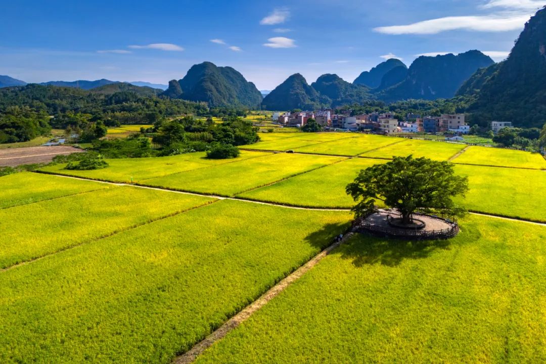 探访广东小桂林-阳春,感受鬼斧神工的喀斯特风光,秋日金黄的稻田,洋溢着丰收的喜悦。