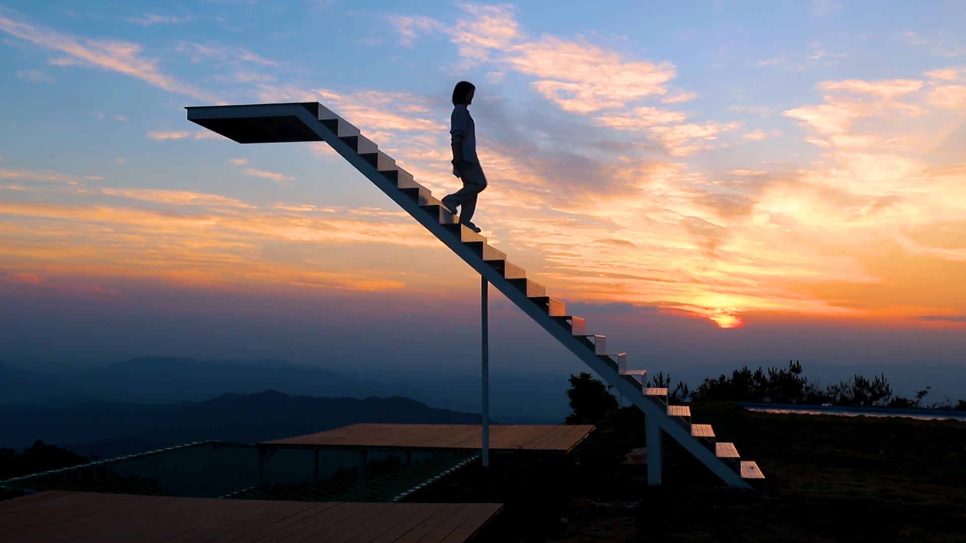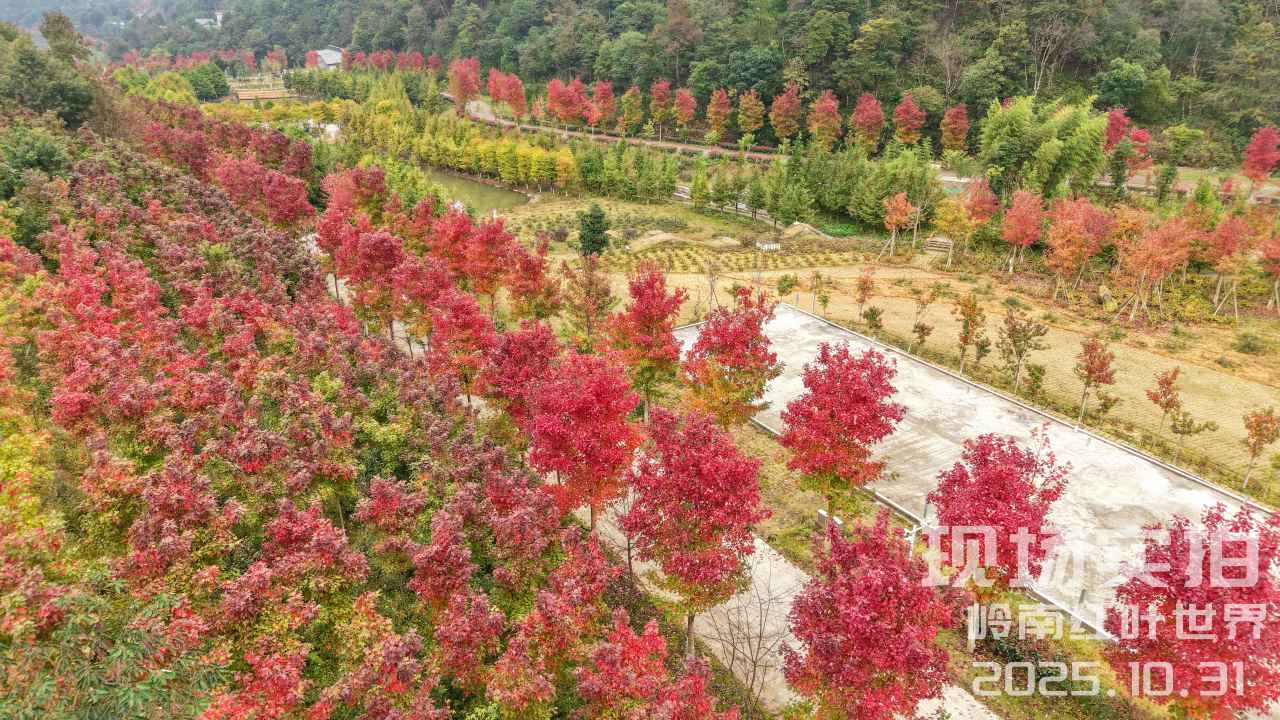 岭南红叶世界:红叶大道绚烂与山野间,天空之境日落倒影人像,山野茶田蜿蜒;