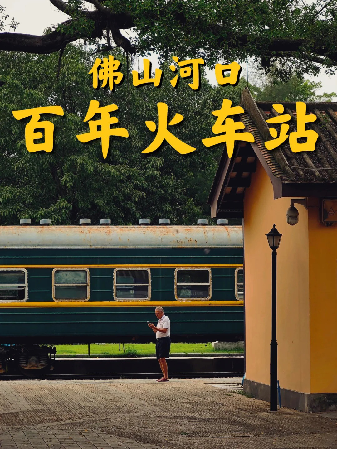 与芦苞粉黛的柔美形成鲜明对比的,是坐落于三水河口镇的百年火车站。它静静地伫立在北江畔,是广三铁路的终点,被誉为“中国最早的复线铁路”的见证者。这里没有喧嚣的汽笛,只有岁月的回响,为钟情于怀旧、工业风和人文纪实的摄影师提供了一个绝佳的创作平台。斑驳的铁轨向着远方延伸,锈迹与磨损铭刻着时间的痕迹;充满民国风情的站厅、信号所和候车室,其黄墙灰瓦、拱形门窗无一不散发着厚重的历史气息;停放在铁轨上的老式火车头与车厢,更是充满故事感的拍摄主体。