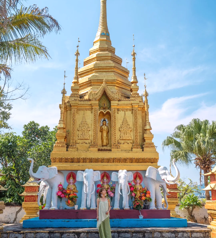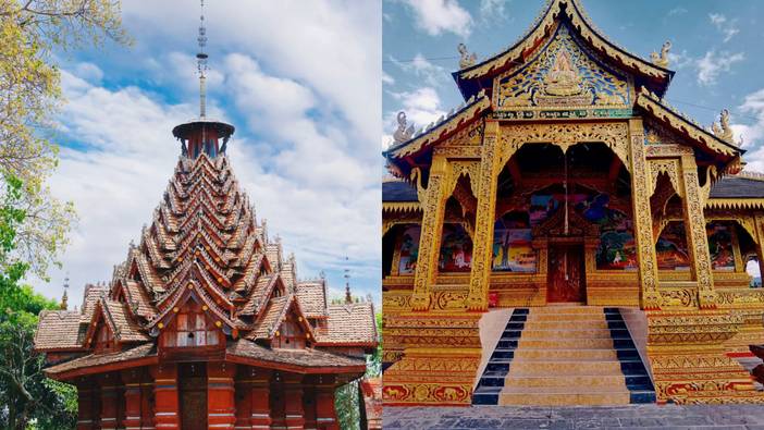 看完日出后适时离开景迈山,中间打卡又一隐秘小众景点—【景真八角亭】,寻找失落的佛国。景真八角亭,88年的国保,属南传上座部佛教建筑中的戒堂。比景洪那些游客攒动的佛寺,这里实属仿古天堂了。景真八角亭静静地矗立在山头之上,整座建筑以砖木结构为主,高约15米,呈十六角形,整座建筑精致秀丽,形似一朵层层叠叠绽放的莲花,厚重的颜色与枝繁叶茂的菩提树遥相呼应,风吹动铜铃宛若阵阵梵音传来,行走其中,不禁让人心生敬畏。
