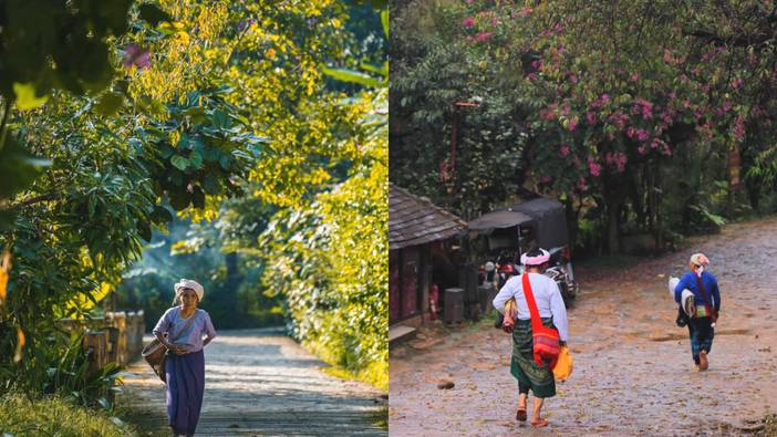 继续往前,来到景迈山【糯干古寨】。世人只知景迈布朗,但不知道在景迈深处还藏着一个更为古朴原始的傣寨,少有游人探访的古寨,如山水画一般,体现景迈山独有的深沉魅力。