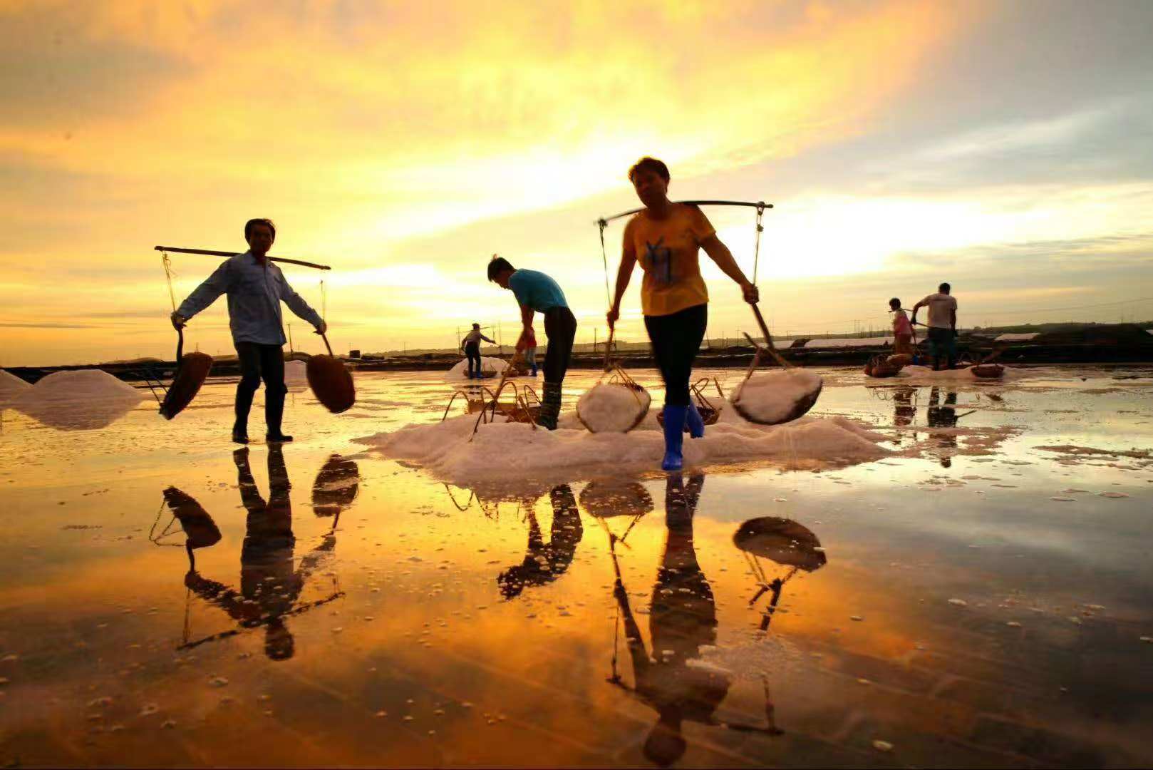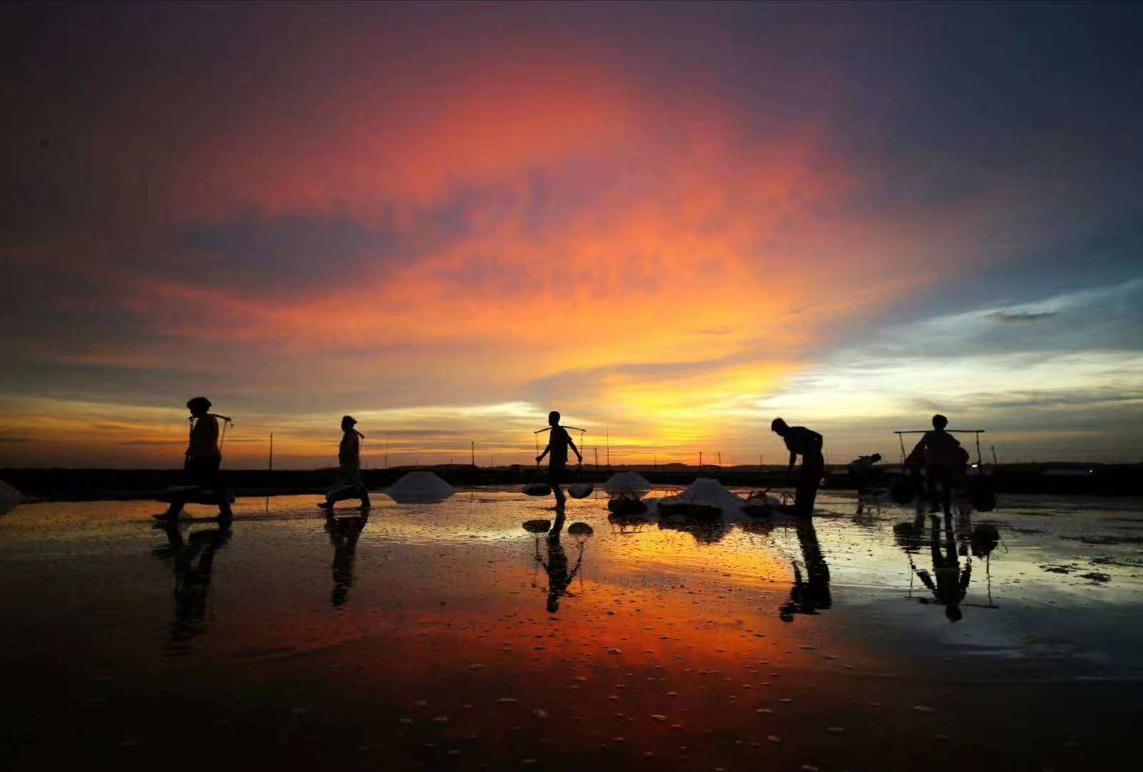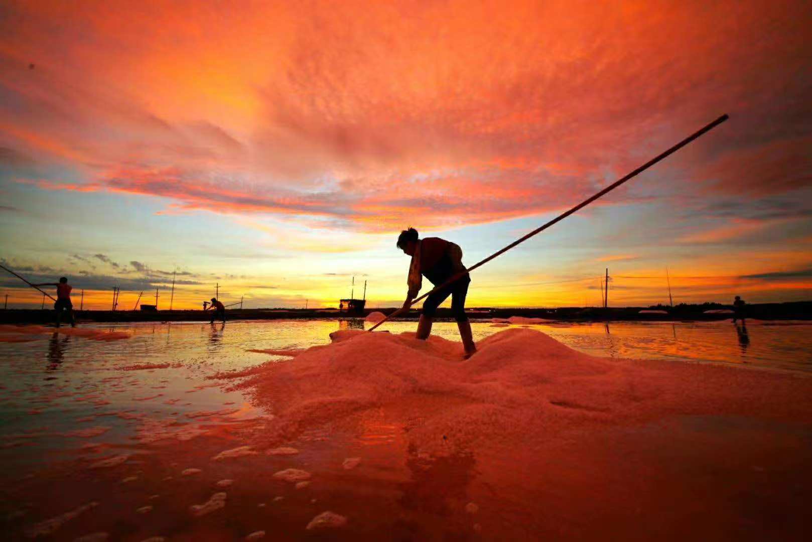 盐田景观也是南极村的一大亮点,特别是日出日落时分,盐田会形成镜面效果,反射天空色彩。千亩盐田在光影下呈现几何美感,如同大地的调色盘,傍晚时分的镜面效果尤为震撼!