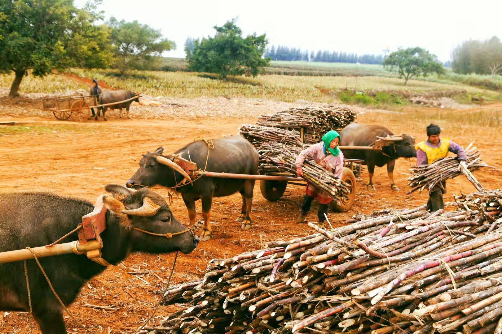 每年冬季,徐闻的甘蔗田便迎来丰收季,这片土地主要种植制糖的甘蔗品种,收割工作几乎完全依赖人力。清晨四五点便借着灯光开始劳作,直至傍晚,将一根根甘蔗砍倒、去除叶子、捆扎装车。这种纯粹的人力劳作,展现了与大机器农业截然不同的节奏和力量感。
