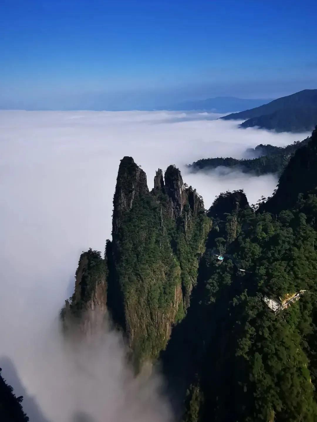 09:30 到达景区东门口,买票坐景区接驳车,然后换乘缆车上山(没有其他交通工具,只有缆车上山);