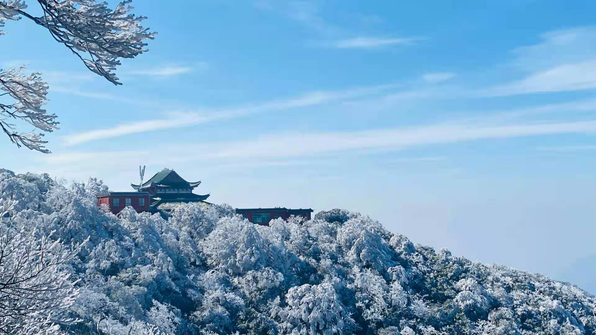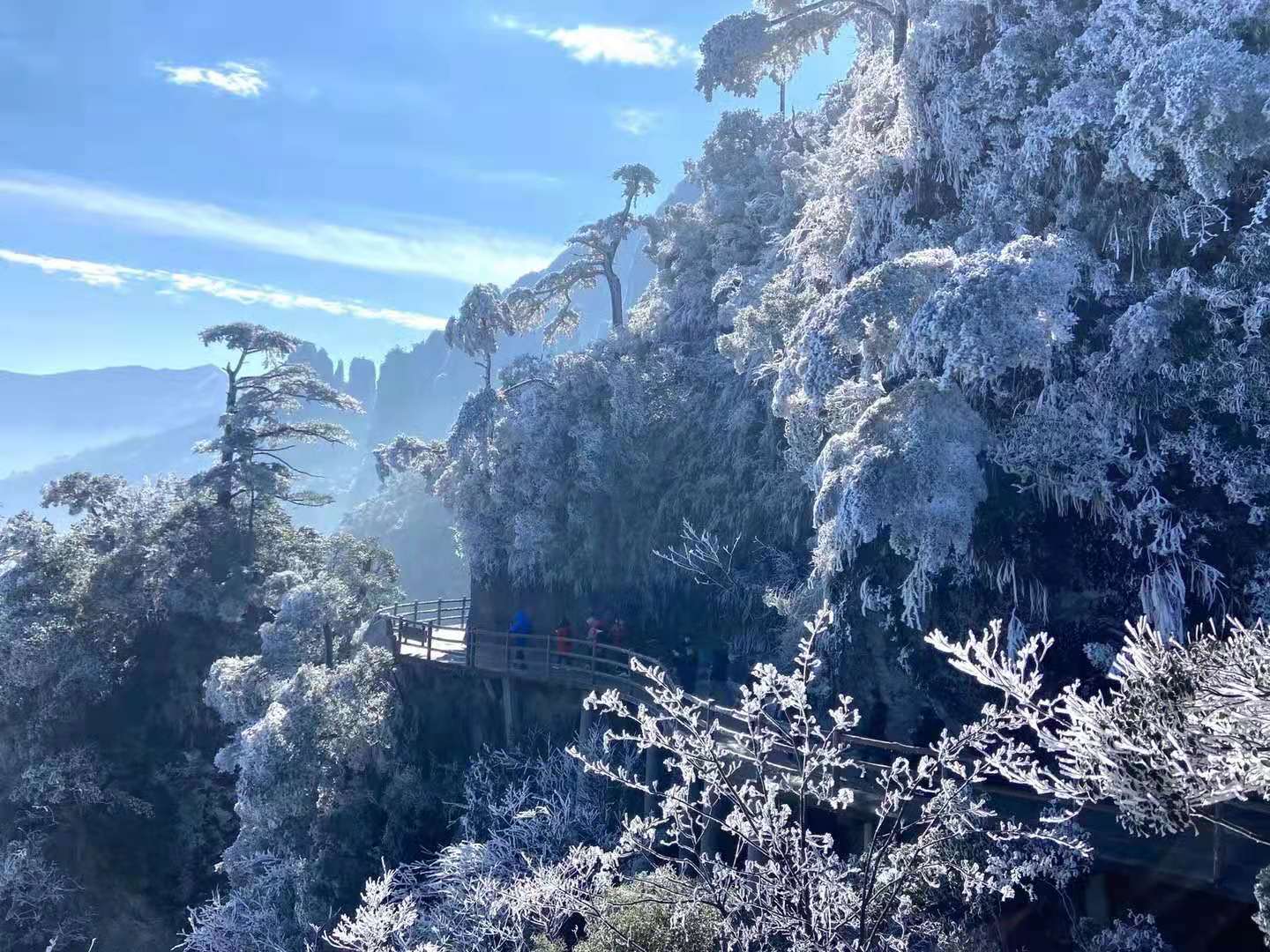 阶梯、栈道上也铺满冰霜,仿佛通往天上人间。