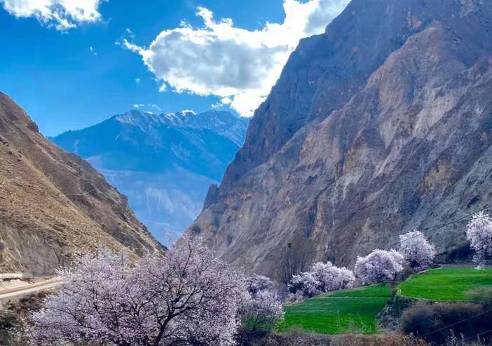 从拉萨出发,沿拉林高速(也称拉林高级公路) 行驶约400公里,车程5-6小时。途中游览嘎拉桃花村(林芝桃花节主会场之一),欣赏雪山、桃林与青稞田相映的景色。在中国“最美公路”之一上驰骋,看沿途山川河谷风光。春季在嘎拉村拍摄桃花与雪山的经典合影。