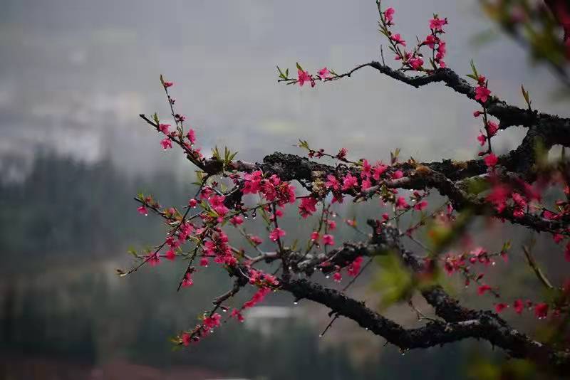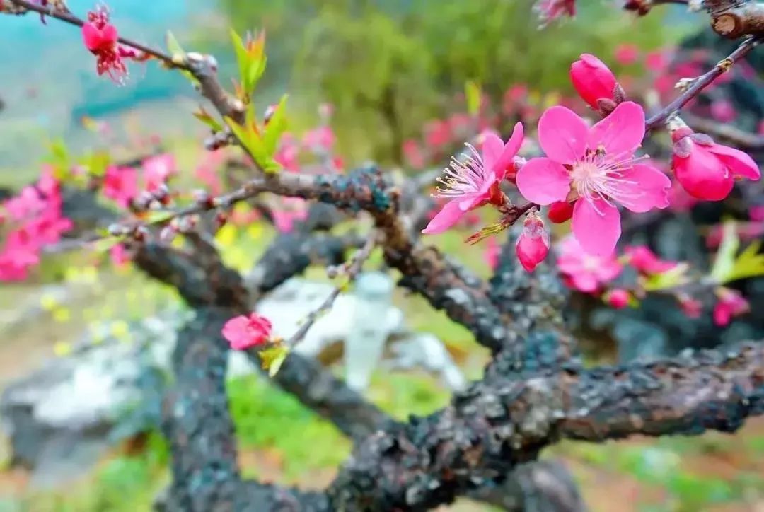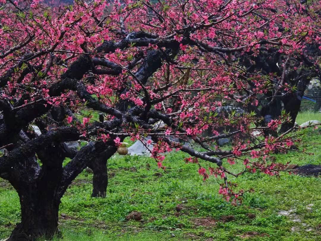 桃花树干古曲婀娜,宛如观赏的盘景树木,桃红古树遍布山野,层恋叠嶂,是摄影创作的好去处。
