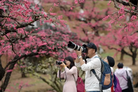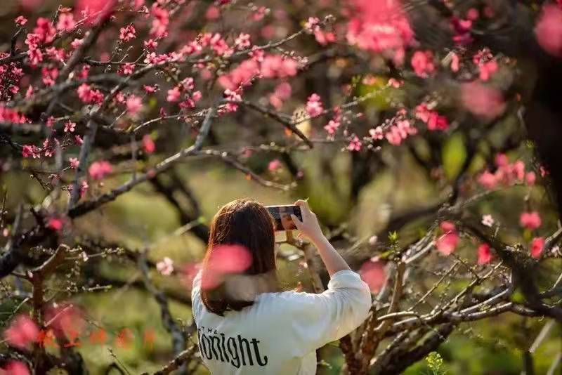 每年二月下旬至三月中旬河源连平的万亩桃林便会苏醒漫山遍野的绯红将九连山染成一片灼灼的云霞,吸引了大量游客和摄影爱好者。