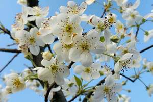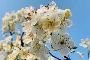 2月正是山楂花赏花的好时节,近千株雪白的山楂花漫山遍野绽放,引起蝴蝶围着花朵翻飞,小巧的花瓣在阳光映照下晶莹透亮。