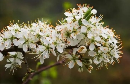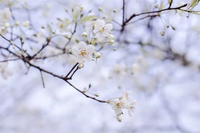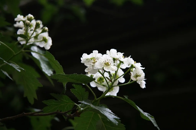山楂花又称山里红花,然而却是洁白的颜色。《山植树之恋》电影里也对山楂花是白还是红做了一番文章,归根结底是情怀的探讨。山楂树就此成为了最纯洁的爱情之树。