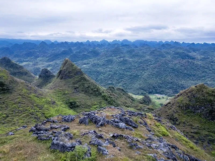 14:40 到达莫六山顶,一览众山小,观看喀斯特地貌,及英西群峰众岭。