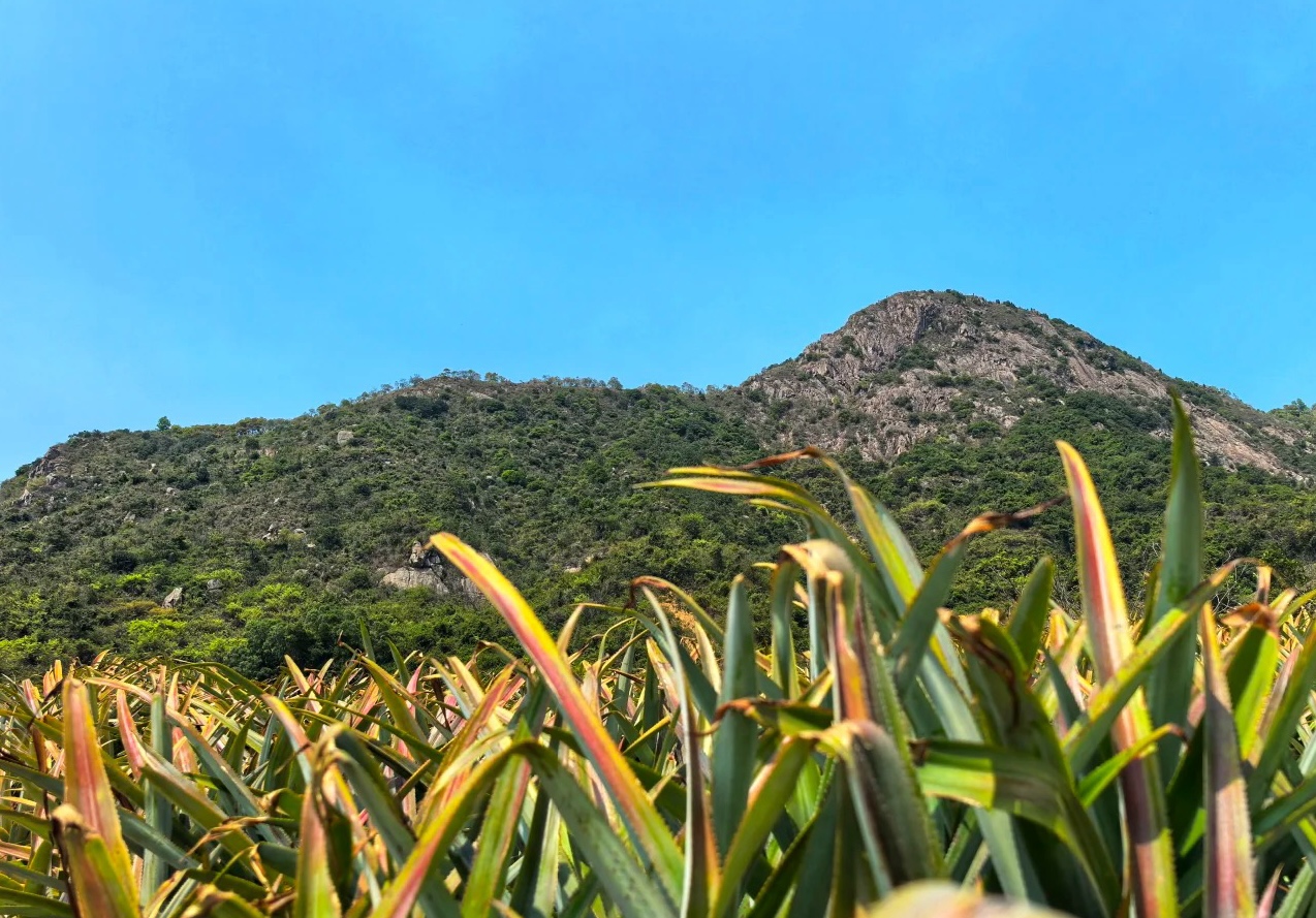 丫髻山周边的菠萝果园,由一垄一垄约半米高的菠萝树组成,类似于梯田,从山腰层层叠叠直到山脚,高低错落看起来很壮观。