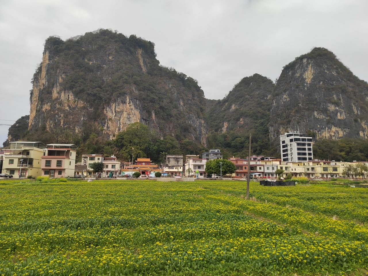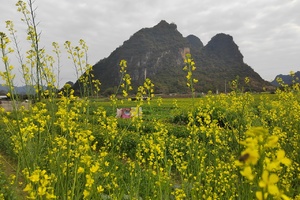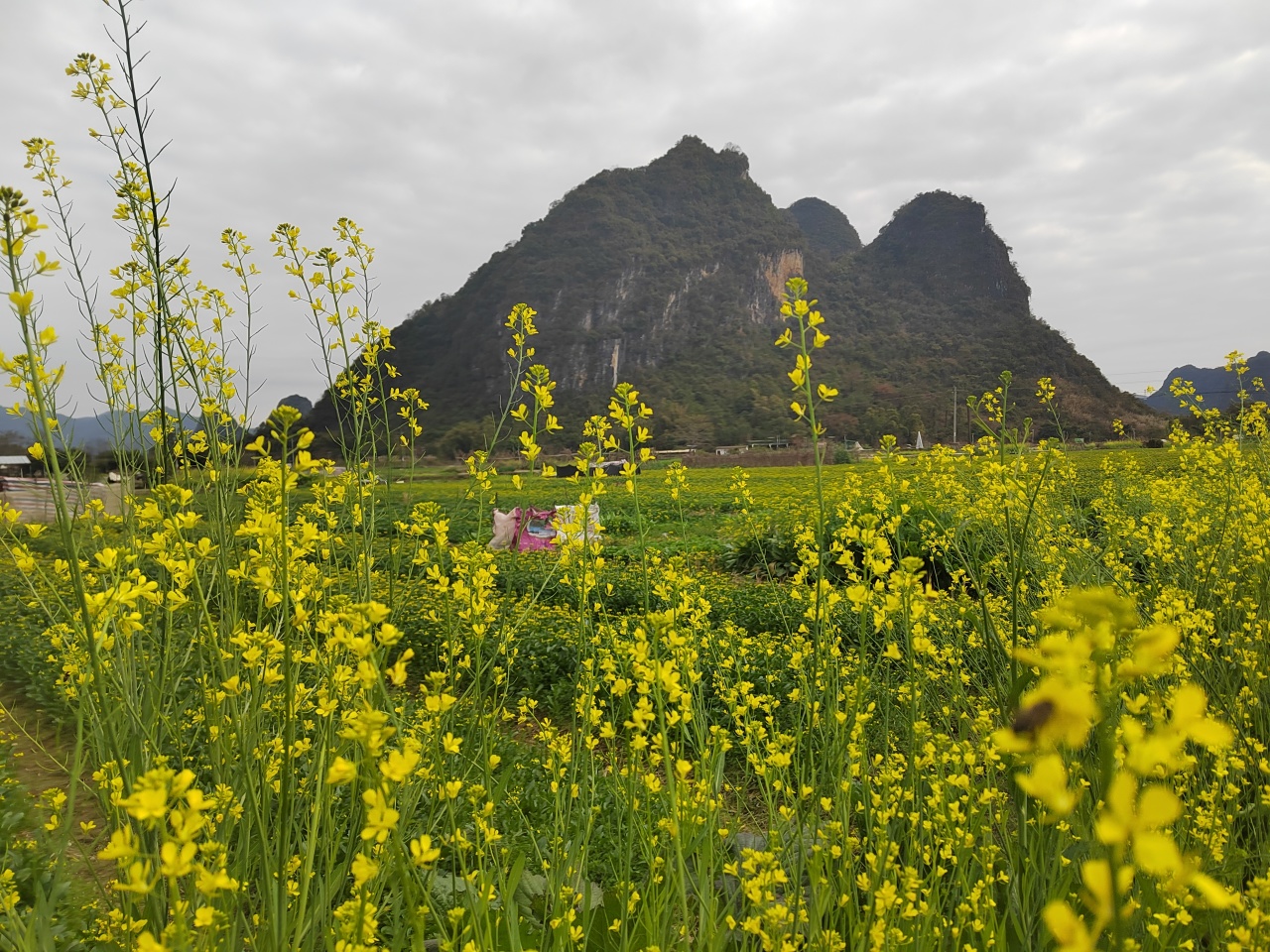 恰逢春日,英西峰林田间的油菜花开花季节,为峰林增添一层诗意。
