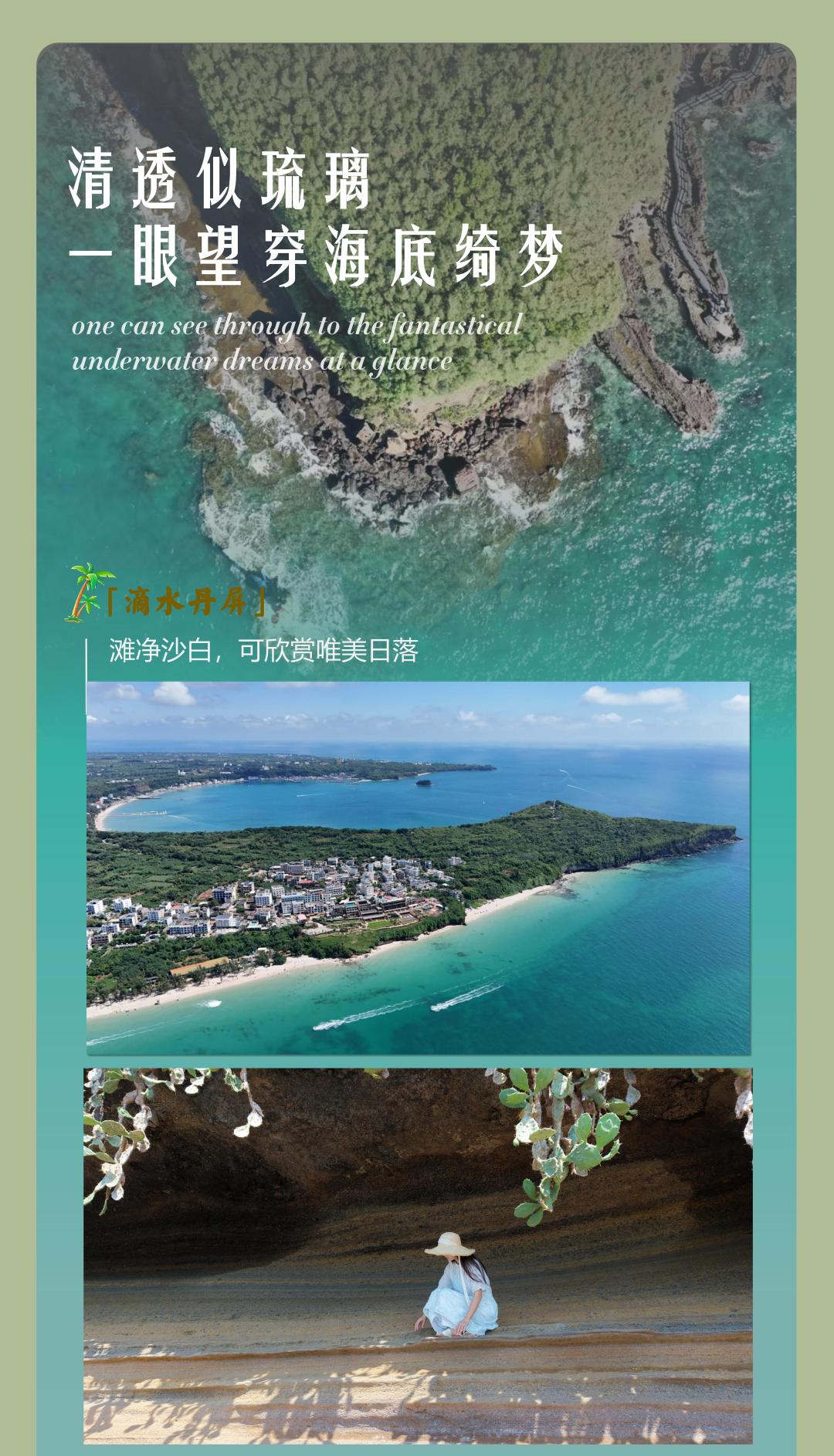 14:00 乘坐观光车前往滴水丹屏景区,欣赏唯美风光,还可去珊瑚馆参观,了解绚丽多彩的珊瑚;