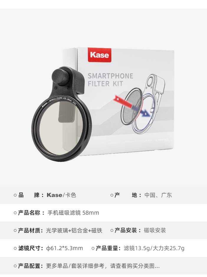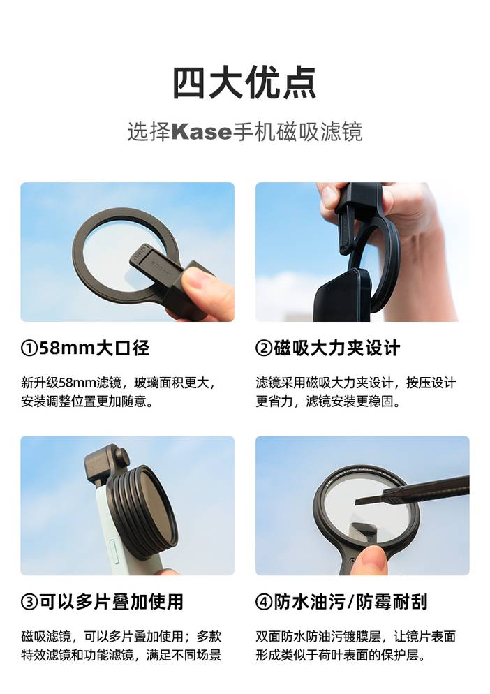 Kase卡色 手机磁吸滤镜套装适用于小米iPhone苹果华为可调星芒镜GND渐变灰镜CPL偏振镜黑柔