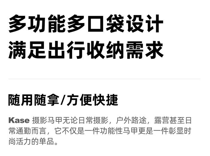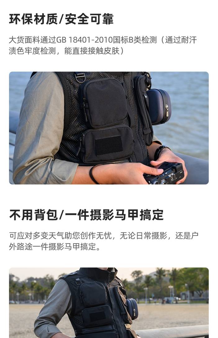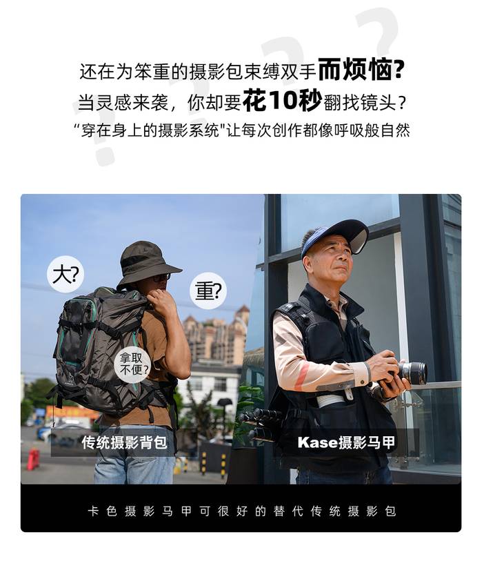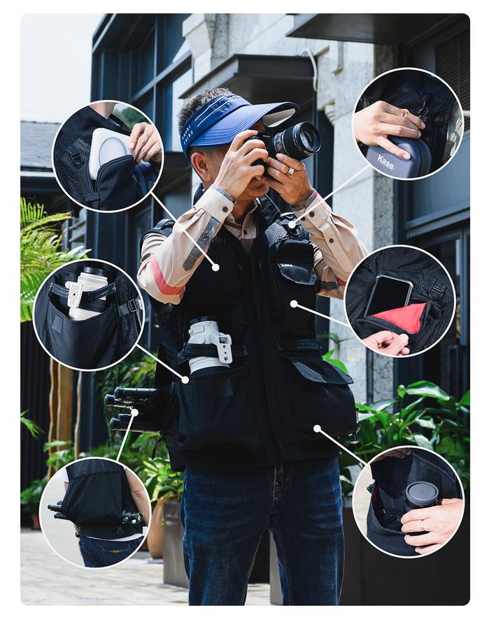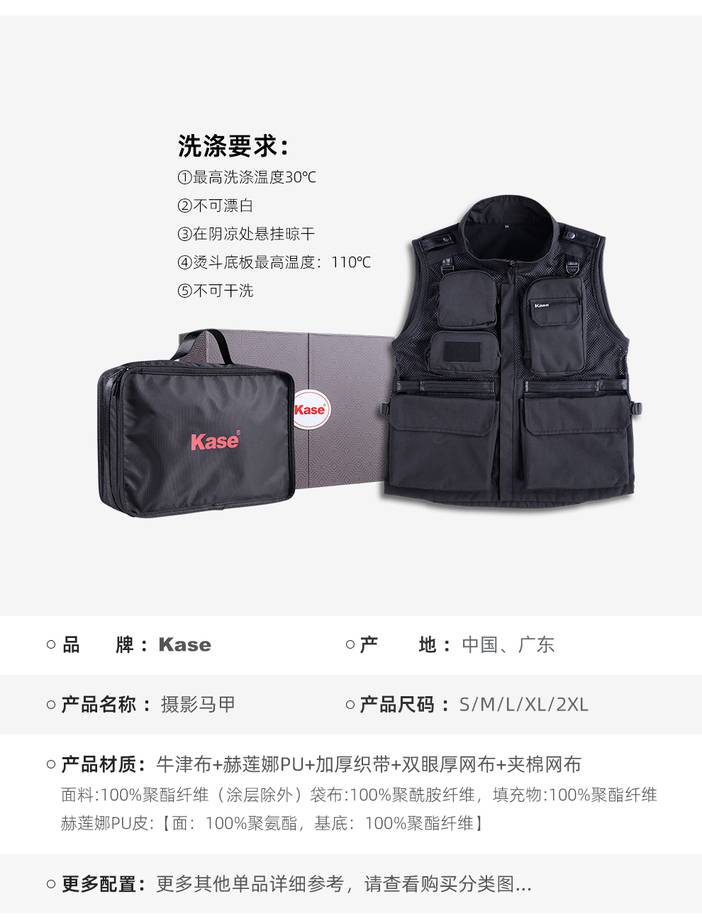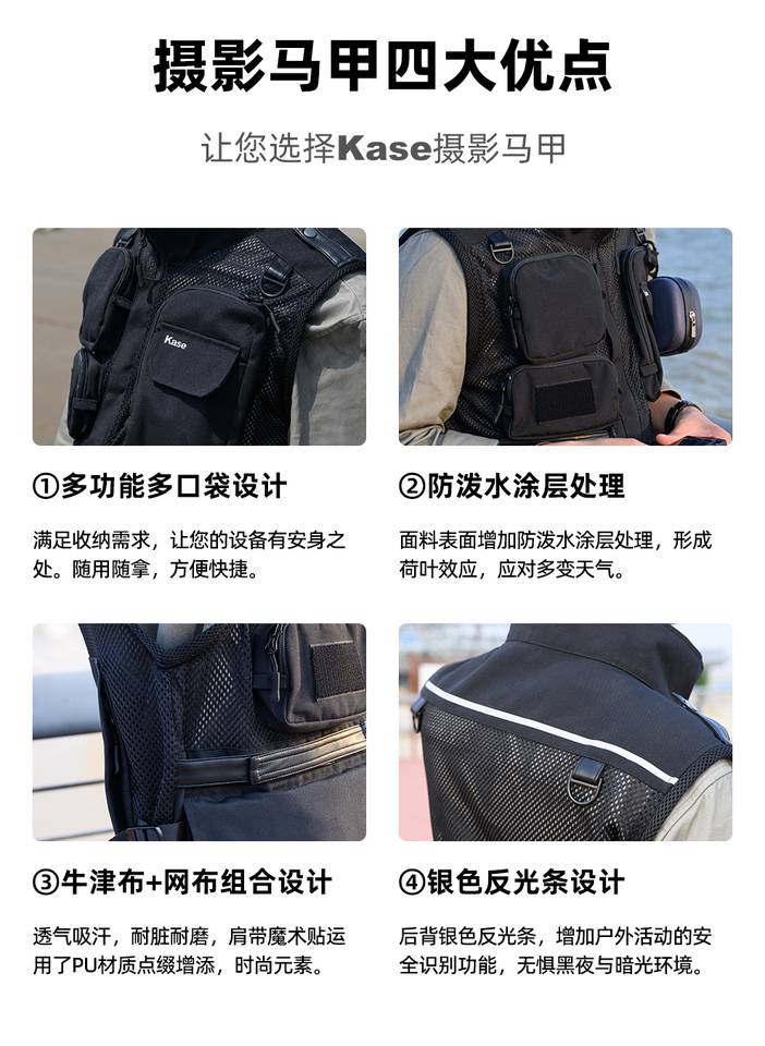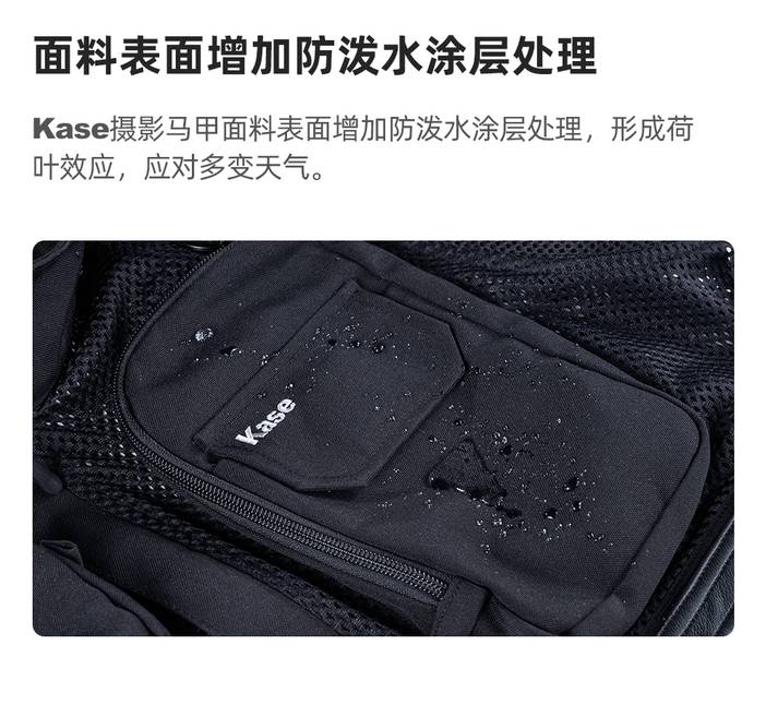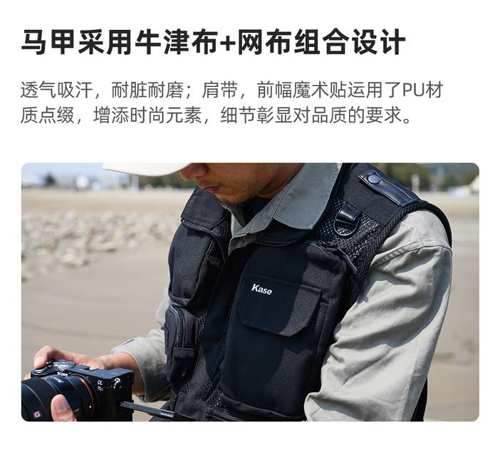器材推荐 | kase卡色 专业摄影马甲背 多功能多口袋设计 防泼水涂层 轻便透气耐磨抗皱 牛津布